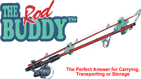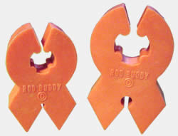 Fortunately, today there's The Rod Buddy by Maritime Innovations. The Rod Buddy lets you clamp both parts of a two-piece fishing rod. Unlike cumbersome rubber bands, twist ties or sticky tape, The Rod Buddy consists of two soft yet firm, poly-plastic clamps that hold the rod securely. As a result, you can leave your rod rigged without having to remove the reel, line or even the lure...or have to worry about tangles, scratches, etc. The Rod Buddy is the perfect solution for any angler looking to take the hassle and frustration out of carrying, transporting, protecting and storing their expensive fishing rods. Available in two sizes, including a large rod shaft design, The Rod Buddy is a fisherman's dream come true!Testimonials | Links | Contact | Home
